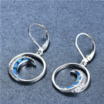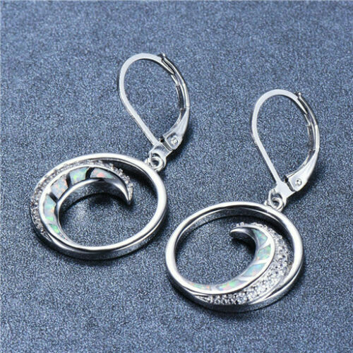 Υπέροχα κρεμαστά σκουλαρίκια που έχουν ως θέμα το μισοφέγγαρο διακοσμημένα με οπαλίνα και λευκά ζιργκόν σε κοπή round!