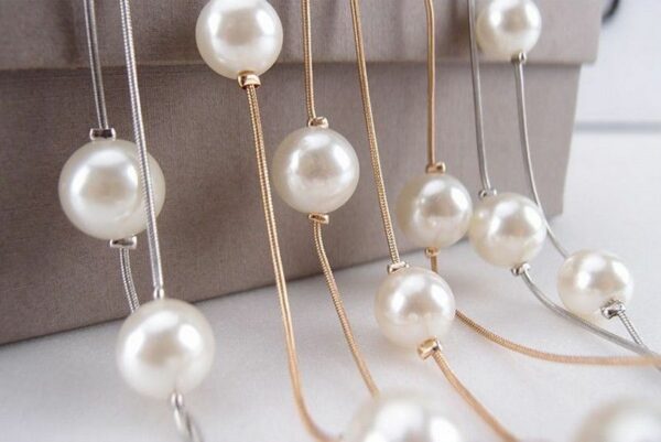 Υπέροχο μακρύ διπλό κολιέ με λευκές πέρλες 10mm σε χρώμα silverκαι gold.