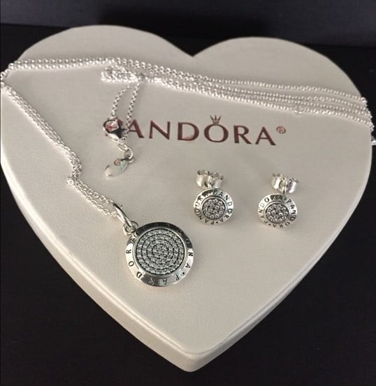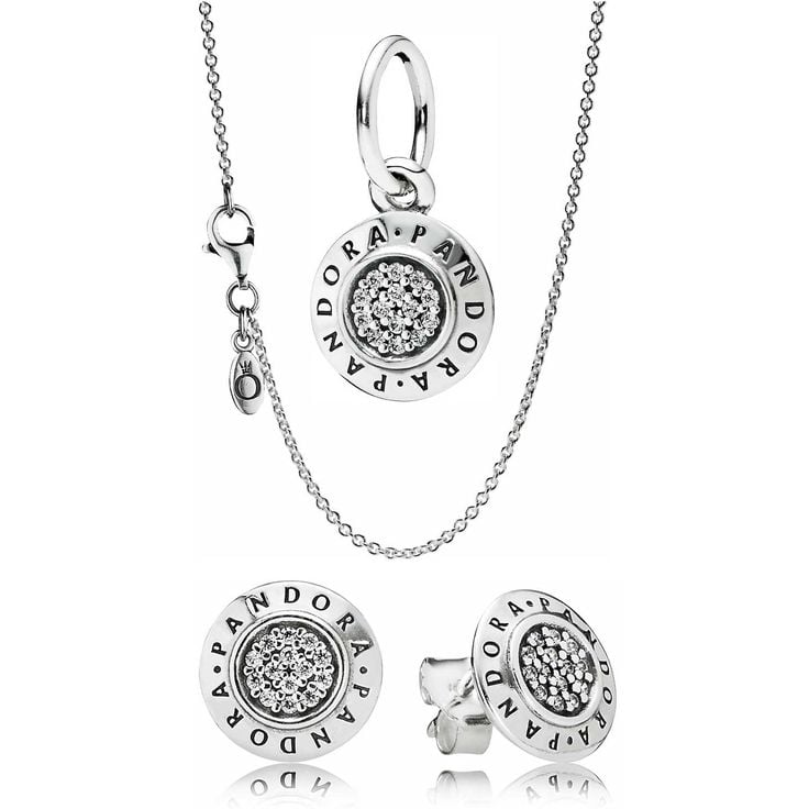 Υπέροχο επώνυμο γυναικείο σετ Pandora σκουλαρίκια μαζί με μενταγιόν. - Swan Offers