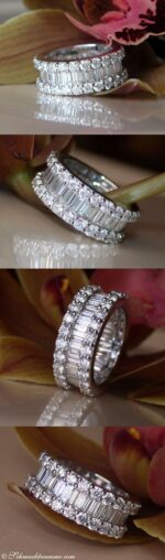 Βέρα επάργυρη 925, διακοσμημένη στο κέντρο με λευκά ζαφείρια (lab-created) σε κοπή παγιέτα και περιμετρικά σε κοπή round (7mm).  Bάρους 7,50 ct. Iδανικό δώρο επετείου γάμου ή αρραβώνα.
