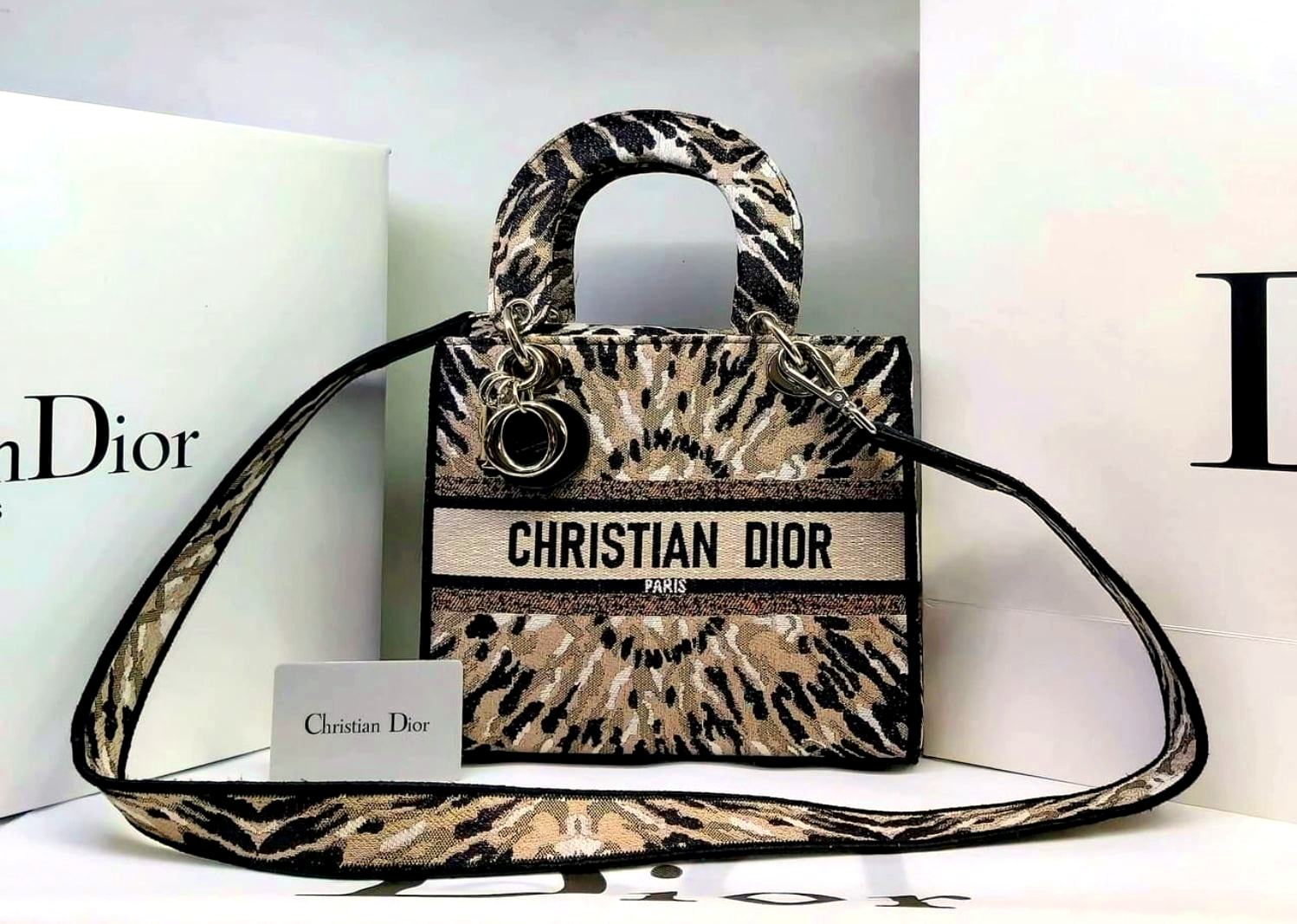 Η τσάντα Lady D-Lite συνδυάζει την κλασική κομψότητα με τον μοντέρνο εκσυγχρονισμό. Κεντημένη στο μπροστινό μέρος φέρει την υπογραφή «Christian Dior». Υπέροχες μεταλλικές πινελιές, εξωραΐζουν το στυλ. Εξοπλισμένη με ένα φαρδύ, αναστρέψιμο και αφαιρούμενο κεντημένο ιμάντα ώμου, η μεσαία τσάντα Lady D-Lite μπορεί να μεταφερθεί στο χέρι, να φορεθεί πάνω από τον ώμο ή σταυρωτά. Ευρύς, αφαιρούμενος και αναστρέψιμος κεντημένος ιμάντας ώμου