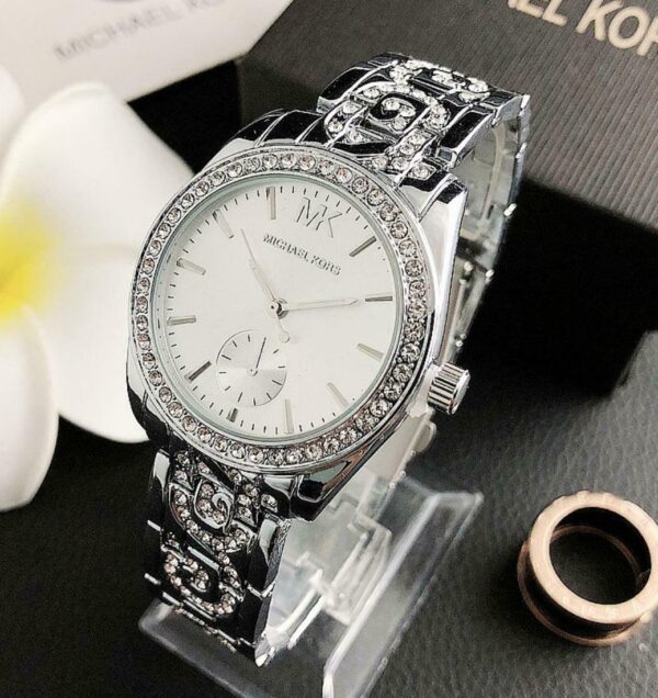 Γυναικείο ρολόι πολυτελείας Michael Kors. Εκθεσιακό κομμάτι βιτρίνας καταστήματος, προηγούμενης σεζόν χωρίς την αρχική του συσκευασία., απαράμιλλης ομορφιάς! Διάμετρος καντράν 3,7 εκατοστά! Διαθέτει μπρασελέ το οποίο είναι διακοσμημένο με λευκά ζιργκόν σε κοπή round! από ανοξείδωτο ατσάλι, ρυθμιζόμενο ώστε να προσαρμόζεται σε όλους τους καρπούς. Κρύσταλλο ορυκτό ειδικής σκλήρυνσης