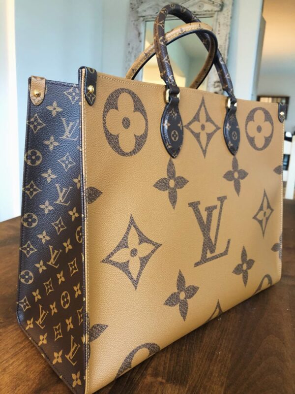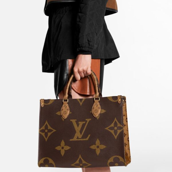 Φτιαγμένη από καμβά Monogram Giant, η tote τσάντα On The Go Tote Bag GM είναι τόσο εντυπωσιακή όσο και πρακτική τσάντα 2 όψεων. Ένα Monogram Reverse μοτίβο στα πλαϊνά και στις λαβές δημιουργεί μια κομψή αντίθεση στο χρώμα και την κλίμακα. Με τη γενναιόδωρη χωρητικότητα, τους ιμάντες ώμου και τις εμβληματικές κορυφαίες λαβές Toron, αυτό το ευέλικτο μοντέλο GM είναι μια ιδανική τσάντα για καθημερινή χρήση. Η τσάντα OnTheGo είναι λίγο πολύ η μόνη τσάντα που θα θέλετε να φορέσετε ξανά – ειδικά αν ταξιδεύετε συχνά ή απλώς απολαμβάνετε να κουβαλάτε όλη σας τη ζωή όπου κι αν πάτε.
