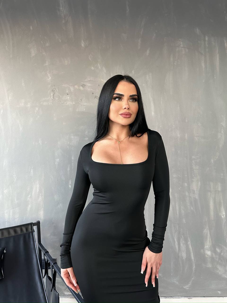 Mακρύ εφαρμοστό μαύρο φόρεμα ”OLIVIA”