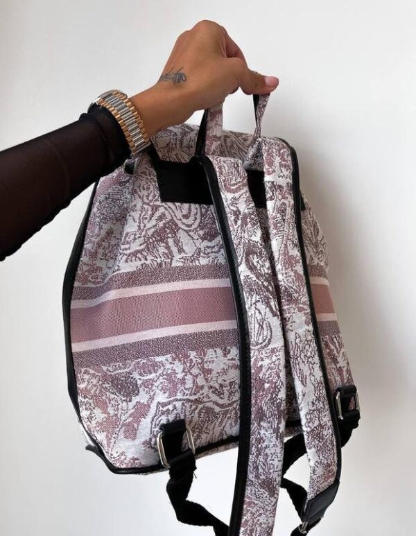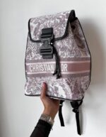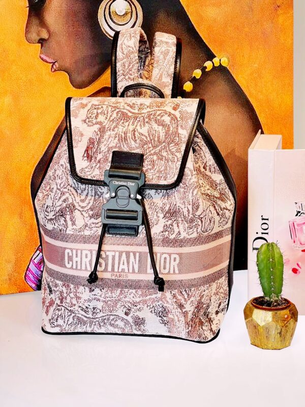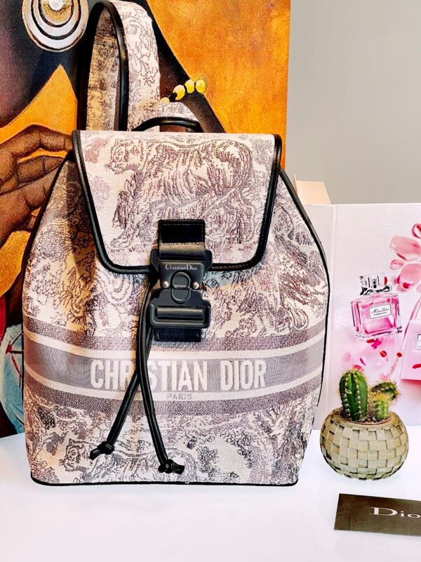 Το σακίδιο πλάτης DiorTravel συνδυάζει τα χαρακτηριστικά του House με έναν μοντέρνο και πρακτικό σχεδιασμό. Κατασκευασμένο από καμβά Dior, είναι διακοσμημένο με την υπογραφή «CHRISTIAN DIOR» στο μπροστινό μέρος. Το μεγάλο σακίδιο μπορεί να μεταφερθεί στον ώμο ή στην πλάτη χάρη στη λαβή και τους ιμάντες του.