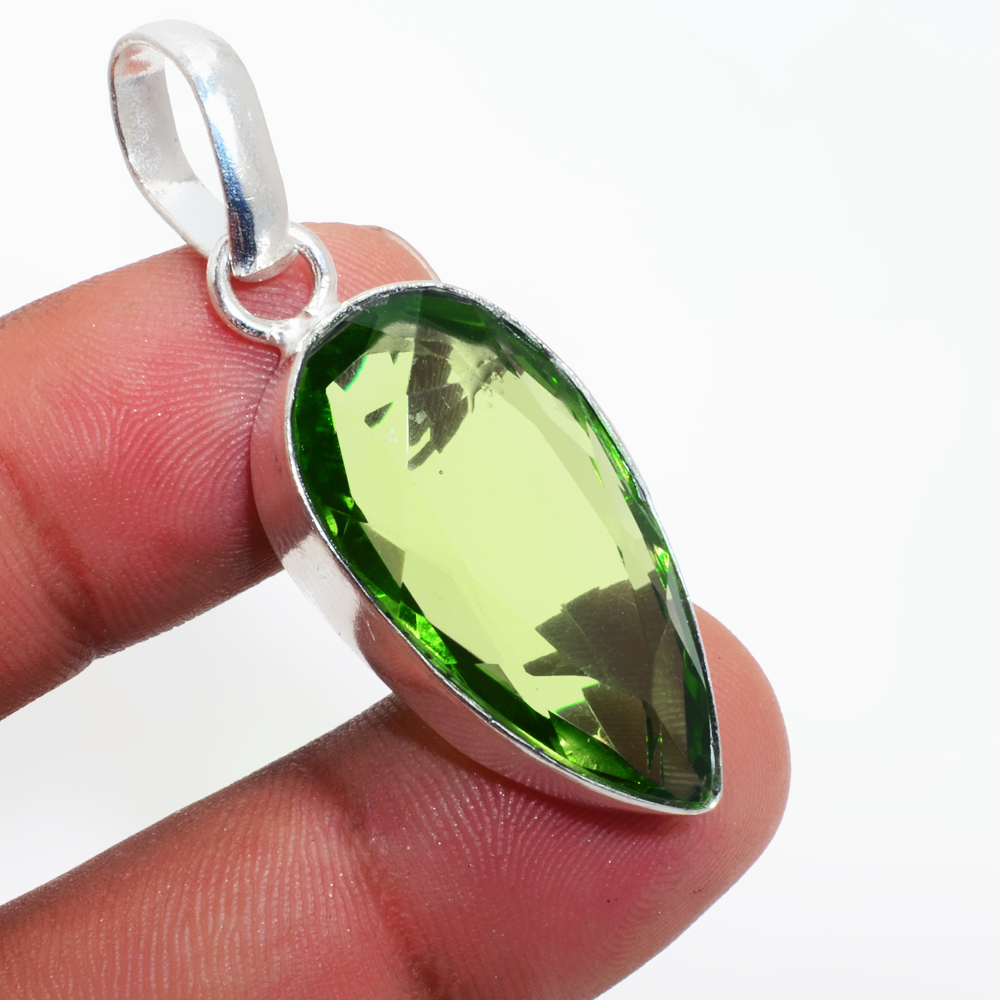 Χειροποίητο, ινδικό μενταγιόν κατασκευασμένο από μασίφ ασήμι 925 και διακοσμημένο με υπέροχο ορυκτό λίθο Περιδοτίτη (peridot) σε κοπή pear.