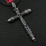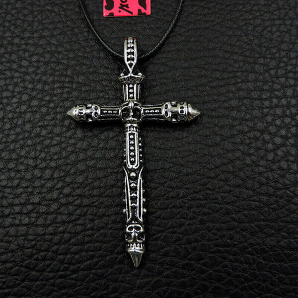 Ανδρικός χειροποίητος σταυρός, φιλοτεχνημένος από την Betsey Johnson. Κατασκευασμένος από ατσάλι έτσι ώστε να μένει αμετάβλητος στο χρόνο, με αντικέ επεξεργασία. Ο σταυρός έχει διαστάσεις 7X4 cm. Συνοδεύεται από δερμάτινο κορδόνι 50 εκατοστών + 5 εκατοστά το αλυσιδάκι προέκτασης στο πίσω μέρος.