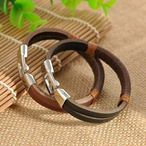 Ανδρικό δερμάτινο βραχιόλι για minimal εμφανίσεις! Μήκος βραχιολιού 21 εκατοστά. Διατίθεται σε δύο αποχρώσεις, καφέ και δίχρωμο καφέ-μαύρο.