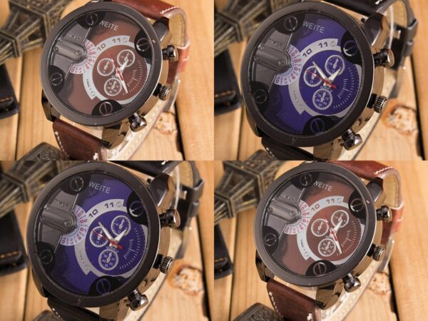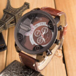 Ανδρικό, μοντέρνο και πρωτότυπο αναλογικό ρολόι τύπου DIESEL από ανοξείδωτο ατσάλι, με δερμάτινο λουράκι, μήκους 24 εκατοστών και με διάμετρο καντράν 4 εκατοστά. Αδιάβροχο έως 3 Atm (πλύσιμο χεριών).