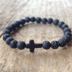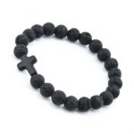 Ανδρικό, μοντέρνο βραχιόλι, κατασκευασμένα από 100% φυσικές, μαύρες, ηφαιστειακές πέτρες, 8mm. Περασμένες σε διπλό ελαστικό ιμάντα.