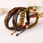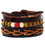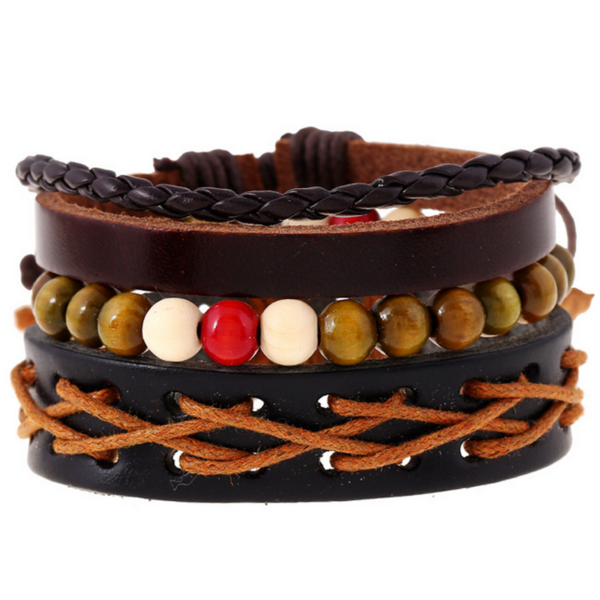 Ανδρικό Vintage βραχιόλι κατασκευασμένο από δέρμα αγελάδας και ξύλο, αποτελείται από 4 βραχιόλια μαζί. Προσαρμόζεται σε όλα τα μεγέθη.