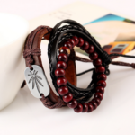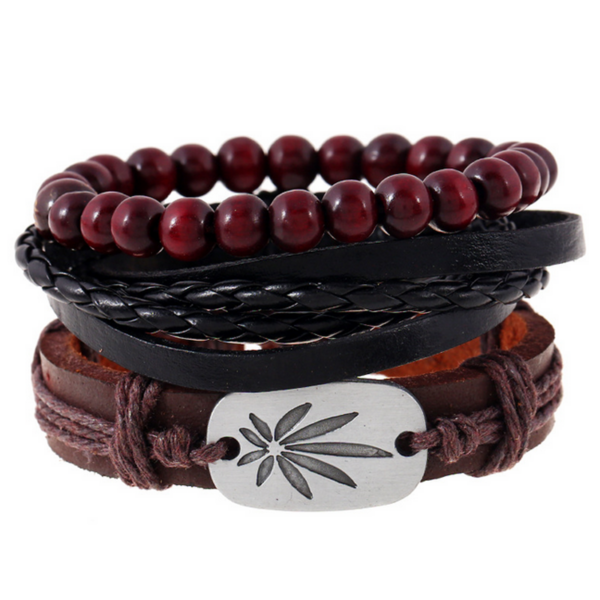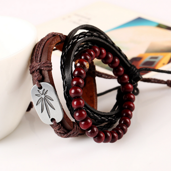 Ανδρικό Vintage βραχιόλι κατασκευασμένο από δέρμα αγελάδας και ξύλο, αποτελείται από 3 βραχιόλια μαζί. Προσαρμόζεται σε όλα τα μεγέθη καρπών.