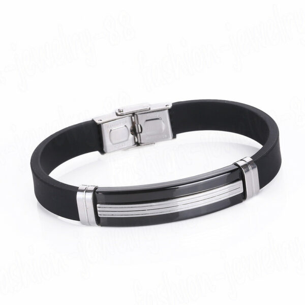 Μοντέρνο μαύρο ανδρικό βραχιόλι. Kατασκευασμένο από σιλικόνη και ανοξείδωτο ατσάλι έτσι ώστε να μένει αμετάβλητο στο χρόνο. Το βραχιόλι έχει μήκος 21 εκατοστά.