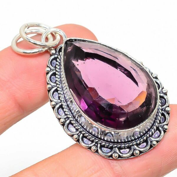 Χειροποίητο μενταγιόν, κατασκευασμένα από ασήμι 925 και διακοσμημένο με Lab creation πέτρα Αμέθυστου (Amethyst) σε κοπή pear. Total Carat Weight (TCW): 32.Mήκος 4,2 cm.