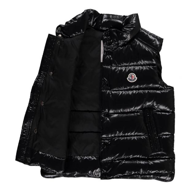 Προσθέστε ένα ξεχωριστό κομμάτι στην γκαρνταρόμπα σας και αντιμετωπίστε τον κρύο καιρό. Υπέροχο μαύρο γιλέκο Moncler με επένδυση, από τον γαλλικό οίκο μόδας Moncler. Κατασκευασμένο από ζεστό αδιάβροχο υλικό με υψηλή γυαλάδα, η σχεδίαση χωρίς μανίκια περιλαμβάνει τσέπες με φερμουάρ μπροστά, ψηλή λαιμόκοψη και κουμπώματα με κουμπιά μπροστά. Φορέστε το πάνω από ένα κομψό πουλόβερ και τζιν για ένα casual ντύσιμο.
