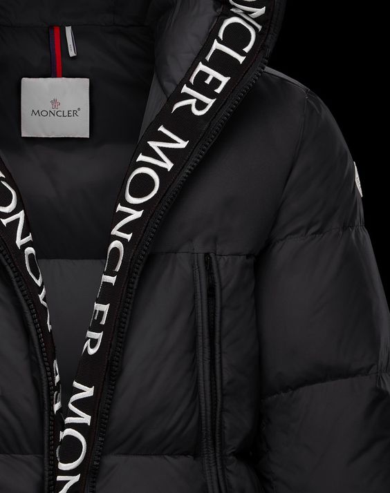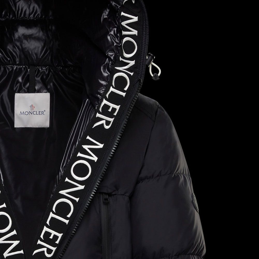 • Moncler μπουφάν με κανονική γραμμή, μακριά μανίκια και κουκούλα