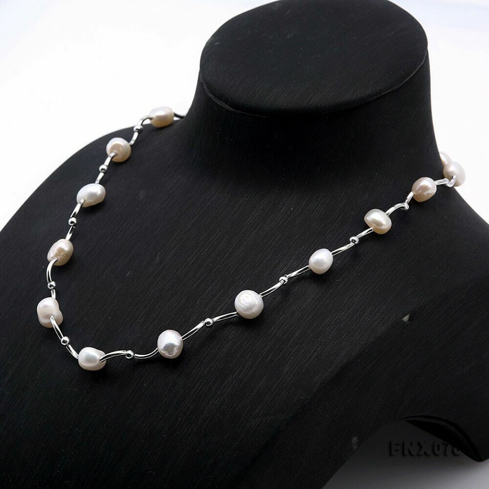 100% φυσικά μαργαριτάρια Ιαπωνίας γλυκού νερού 10x11mm ανομοιόμορφο σχήμα. Μήκος κολιέ 45cm.