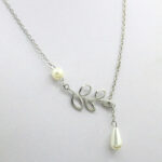 Κολιέ κατασκευασμένο από ατσάλι, που εφαρμόζει ακριβώς στη βάση του λαιμού, διακοσμημένο από δύο άσπρες πέρλες. Το κολιέ έχει μήκος 48 cm + 5 cm το αλυσιδάκι προέκτασης στο πίσω μέρος