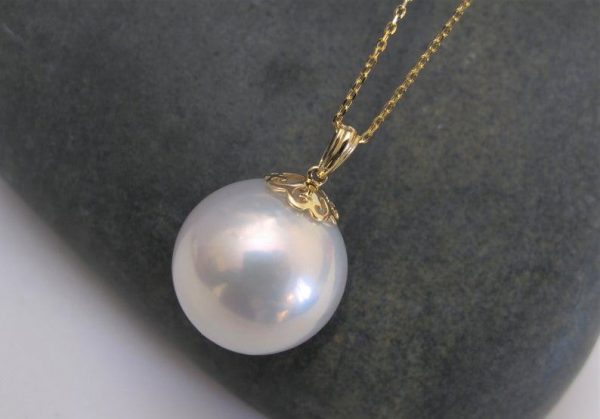 Για εσάς που αγαπάτε τις πολύ μεγάλες πέρλες, σας προτείνουμε, μενταγιόν με εντυπωσιακή λευκή South Sea Shell πέρλα, διαμέτρου 16mm. Ποιότητας ΑΑΑ++ Συνοδεύεται με χρυσή 14k αλυσίδα 45cm .