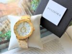 Γυναικείο ρολόι πολυτελείας PANDORA, αναλογικό, πολύ μοντέρνο, σε gold χρώμα σε μπρασελέ και καντράν. Kατασκευασμένο από ανοξείδωτο ατσάλι υψηλής αντοχής και ποιότητας για καθημερινή χρήση και με ενισχυμένο αντιθαμβωτικό τζάμι στο καντράν του! Διακοσμημένο εσωτερικά με λευκά ζιργκόν σε κοπή round. Διαθέτει και ένδειξη ημερομηνίας! Αντιαλλεργικό, σύμφωνα με τις απαιτήσεις της Ευρωπαϊκής Ένωσης! Αδιάβροχο μέχρι 3 Atm (πλύσιμο χεριών)
