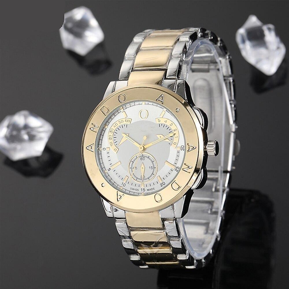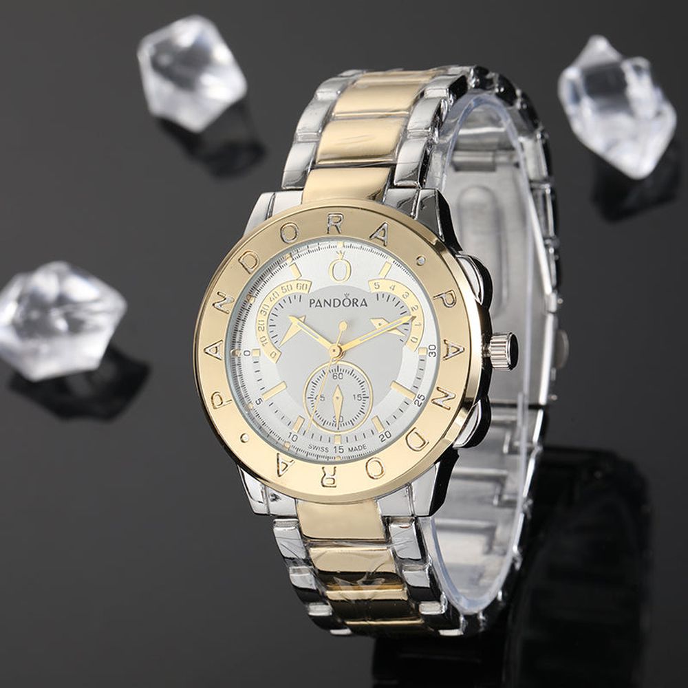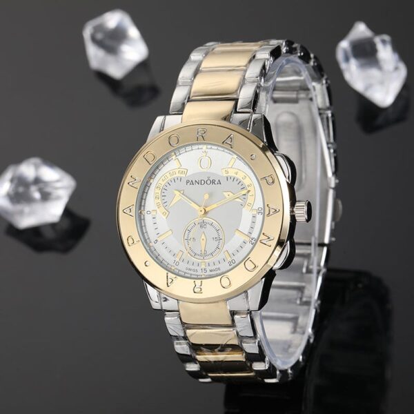 Γυναικείο ρολόι πολυτελείας PANDORA, αναλογικό, πολύ μοντέρνο, σε silver/gold χρώμα σε μπρασελέ και καντράν από ανοξείδωτο ατσάλι υψηλής αντοχής και ποιότητας για καθημερινή χρήση και με ενισχυμένο αντιθαμβωτικό τζάμι στο καντράν του! Αντιαλλεργικό, σύμφωνα με τις απαιτήσεις της Ευρωπαϊκής Ένωσης! Διακοσμημένο εσωτερικά με λευκά αυστραλιανά κρύσταλλα!