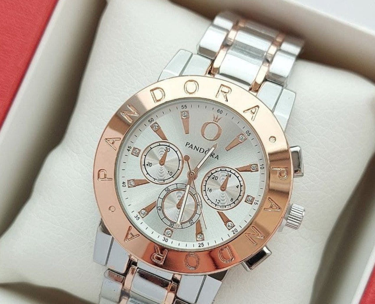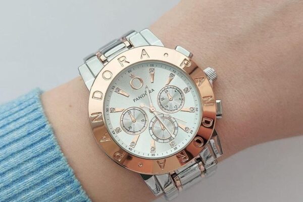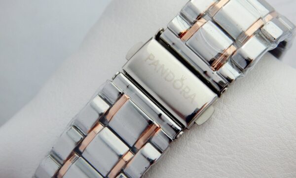 Γυναικείο ρολόι πολυτελείας PANDORA αναλογικό, πολύ μοντέρνο, με μπρασελέ δίχρωμο silver και ροζ gold. Καντράν υψηλής αντοχής και ποιότητας για καθημερινή χρήση και με ενισχυμένο ορυκτό τζάμι στο καντράν του! Κατασκευασμένο εξ ολοκλήρου από ανοξείδωτο ατσάλι.
