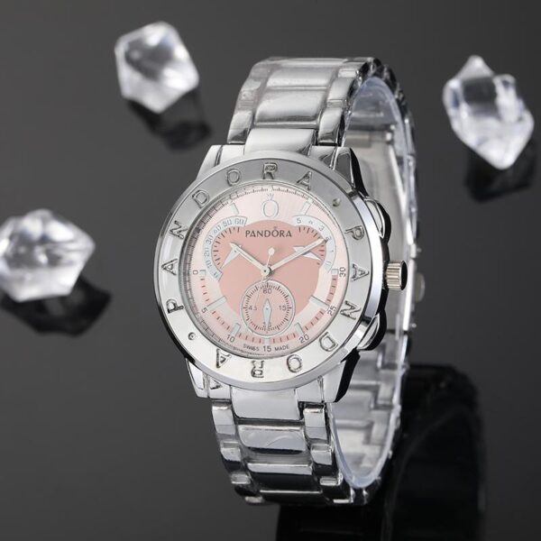 Γυναικείο ρολόι πολυτελείας PANDORA, αναλογικό, πολύ μοντέρνο, σε silver χρώμα σε μπρασελέ και καντράν από ανοξείδωτο ατσάλι υψηλής αντοχής και ποιότητας για καθημερινή χρήση και με ενισχυμένο αντιθαμβωτικό τζάμι στο καντράν του! Αντιαλλεργικό, σύμφωνα με τις απαιτήσεις της Ευρωπαϊκής Ένωσης! Αδιάβροχο μέχρι 3 Atm (πλύσιμο χεριών)