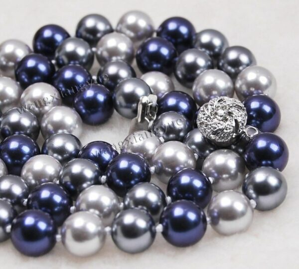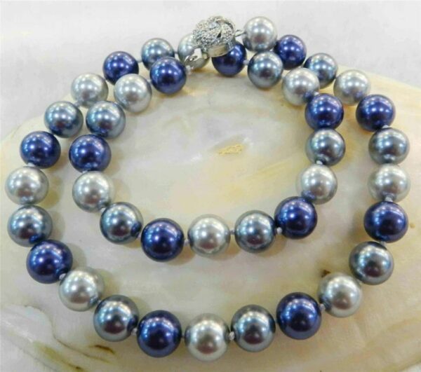 Oι πέρλες πρέπει να υπάρχουν σε κάθε γυναικεία μπιζουτιέρα! Πέρλες 10mm AAA, South Sea Shell σε δύο αποχρώσεις, μπλε και ασημί, δεμένες με διπλό μεταξωτό νήμα. Το κολιέ έχει μήκος 45cm, με υπέροχο κούμπωμα, διακοσμημένο με λευκά ζαφείρια! Ένα πραγματικό κόσμημα!