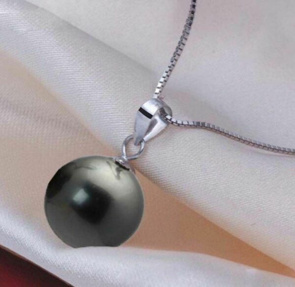 Μενταγιόν ασημένιο 925 με μοτίφ μία μαύρη πέρλα round, 14mm ΑΑΑ++ natural south sea shell. Συνοδεύεται με ασημένια αλυσίδα 45- 50 εκατοστών!