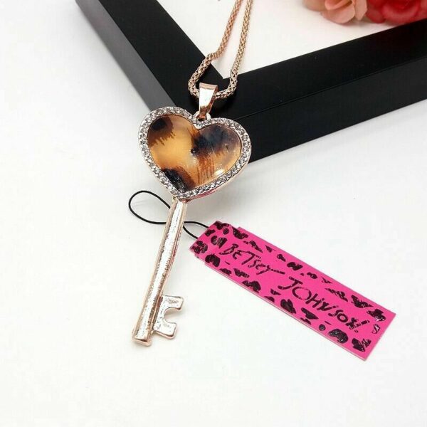 Μενταγιόν “το κλειδί της καρδιάς σας” για να το χαρίσετε εκεί που αγαπάτε! Κατασκευασμένο από ασήμι και χαλκό και διακοσμημένο με animal print κρύσταλλο σε κοπή heart. Φιλοτεχνημένο από την Betsey Johnson. Συνοδεύεται από αλυσίδα 70 εκατοστών. Διαστάσεις μοτίφ 8Χ3 εκατοστά.