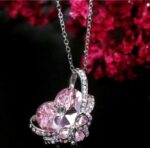 Μενταγιόν με μοτίφ μία καρδιά στο ροζ χρώμα της αθωότητας. Διακοσμημένη με ροζ κρύσταλλο, σε κοπή heart έτσι ώστε να αντανακλά το φως και λευκά ζιργκόν περιμετρικά! Κατασκευασμένο