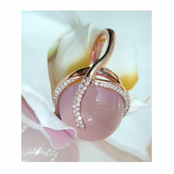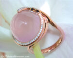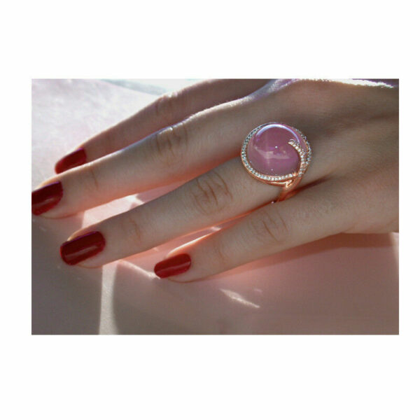 Ένα δαχτυλίδι ιδανικό για να αναδείξει τη θηλυκότητα σας!! Διακοσμημένο με μία υπέροχη ροζ moonstone σε κοπή round και λευκά ζιργκόν περιμετρικά. Kατασκευασμένο από German Silver, με επιμετάλλωση από ροζ χρυσό