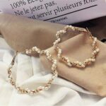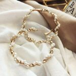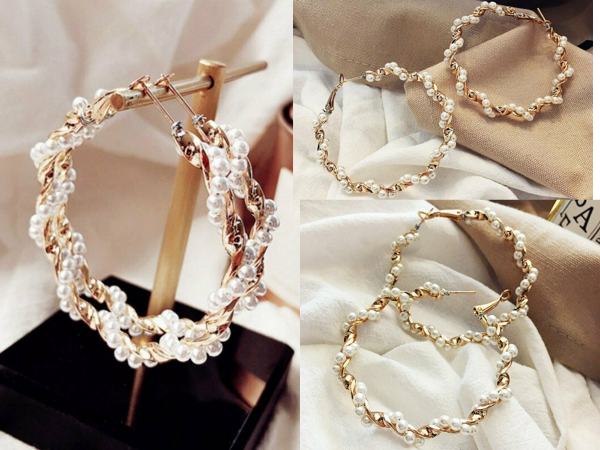 Ρομαντικά και πάντα στη μόδα, σκουλαρίκια κρίκοι διαστάσεων 5.5cm.Kατασκευασμένα από ανοξείδωτο ατσάλι με επιμετάλλωση κίτρινου χρυσού. Διακοσμημένα με λεύκες Faux πέρλες.
