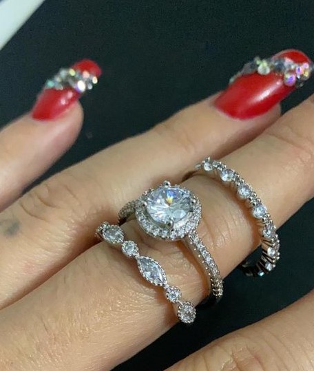 Ασημένιο 925 ΣΕΤ 3 δαχτυλιδιών που αποτελείται από 2 βέρες, με λευκά ζαφείρια (lab-created) σε κοπή round. Μονόπετρο δαχτυλίδι διακοσμημένο με λευκό ζαφείρι (lab-created) σε κοπή round brilliant και μικρότερα λευκά ζαφείρια σε κοπή round. Βάρος Πετρών :0.62ct .Βάρος 5.7 grams.