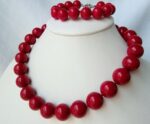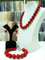 Σετ που αποτελείται από κολιέ, βραχιόλι και σκουλαρίκια, με κατακόκκινα φυσικά round κοράλλια 10mm - Swan Offers