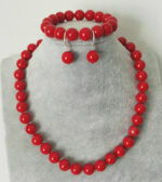 Σετ που αποτελείται από κολιέ, βραχιόλι και σκουλαρίκια, με κατακόκκινα φυσικά round κοράλλια 10mm