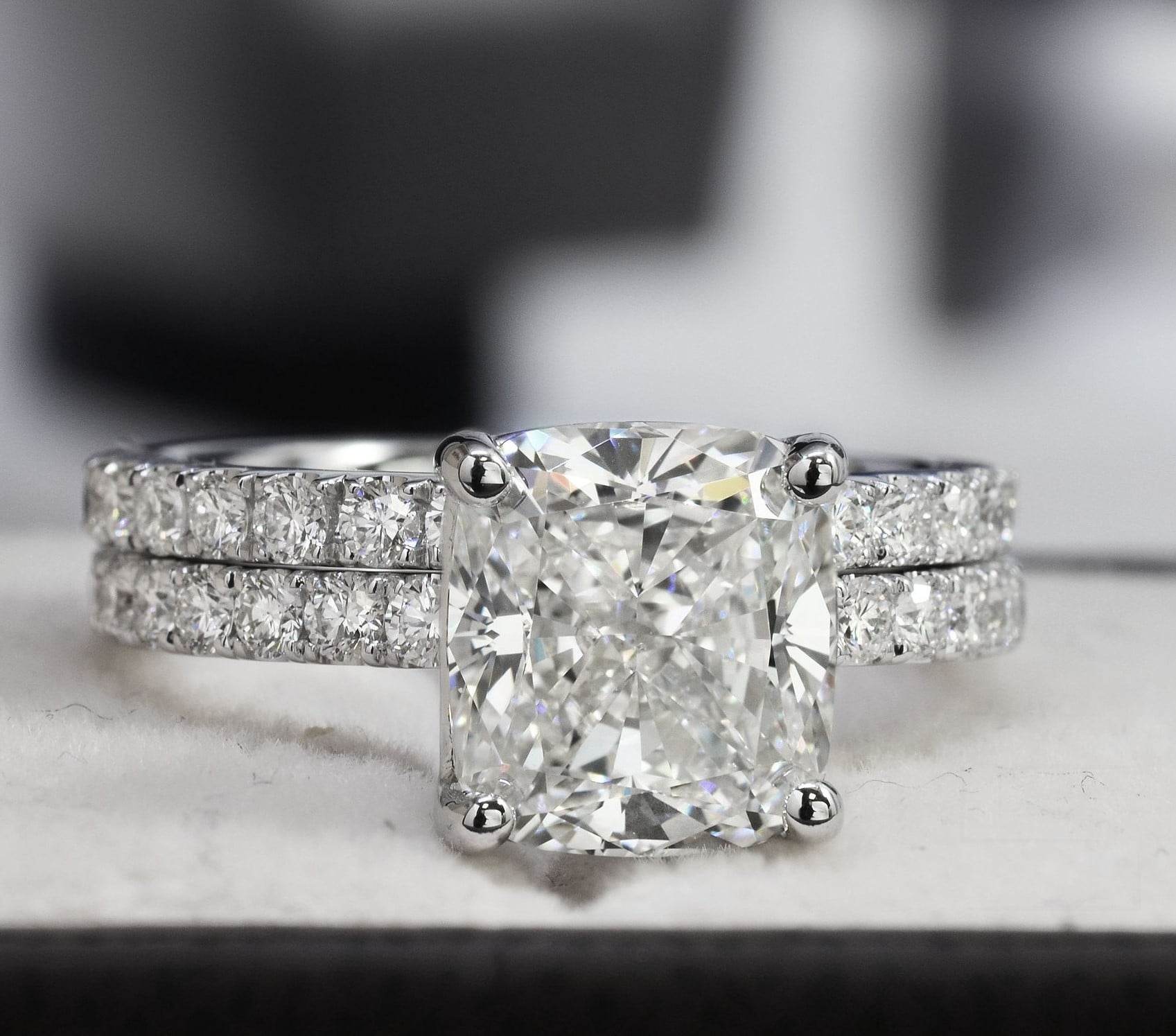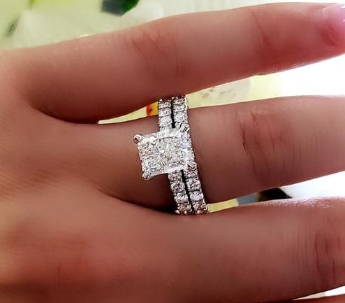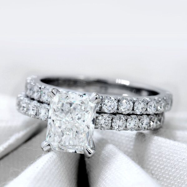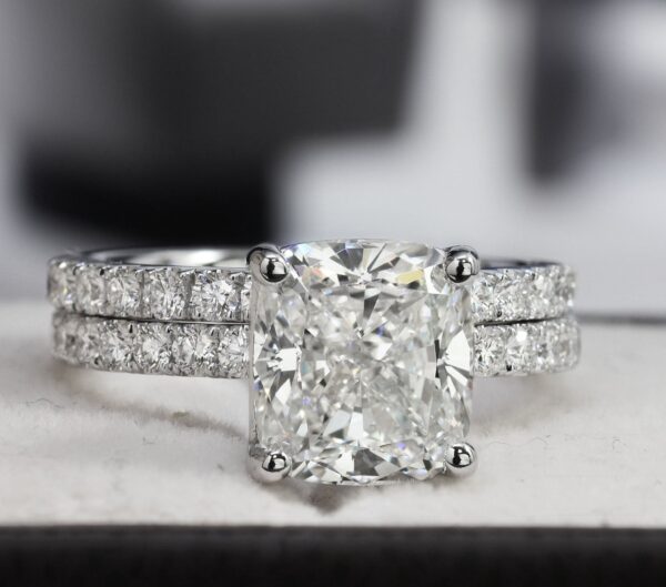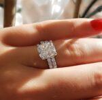 Επάργυρο 925 ΣΕΤ 2 δαχτυλιδιών που αποτελείται από βέρα (δαχτυλίδι σείρε), με λευκά ζαφείρια (lab-created) σε κοπή round. Μονόπετρο δαχτυλίδι διακοσμημένο με λευκό ζαφείρι 9mm (lab-created) σε κοπή Cushion και μικρότερα λευκά ζαφείρια σε κοπή round.Βάρος Πετρών :0.59ct .Βάρος 4.4grams