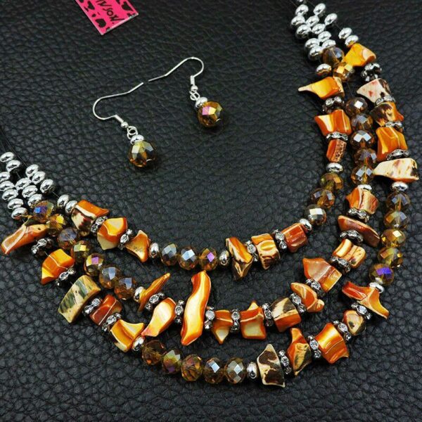 Σετ, στο χρώμα του ήλιου, που αποτελείται από κολιέ με τρεις σειρές και σκουλαρίκια, κατασκευασμένο από σμάλτο με επιμετάλλωση από ασήμι και