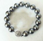 Γυναικείο βραχιόλι με γκρι σκούρο φυσικές South Sea Shell πέρλες ΑΑΑ 10mm περασμένες σε διπλό μεταξωτό νήμα δεμένες μία-μία και υπέροχο μαγνητικό κούμπωμα διακοσμημένο με λευκά ζαφείρια σε κοπή round.