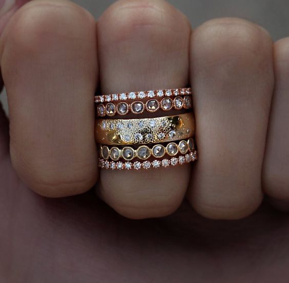 Ιδανικό για all-day εμφανίσεις, σετ από πέντε πανέμορφα δαχτυλίδια σε χρώμα μπρονζέ, διακοσμημένα με λευκά ζιργκόν!!