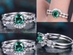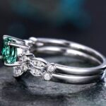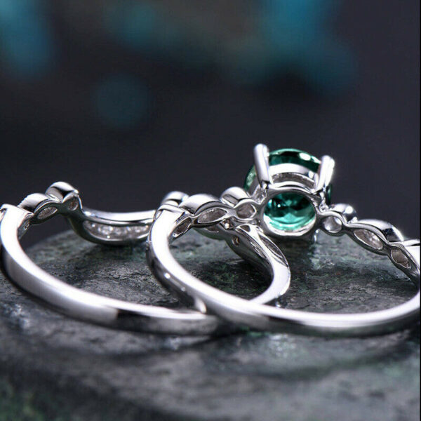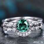 Επάργυρο 925 σετ δαχτυλιδιών που αποτελείται από βέρα διακοσμημένη με λευκά ζαφείρια (lab-created) σε κοπή round και μονόπετρο δαχτυλίδι διακοσμημένο με πράσινο σμαράγδι 6mm (lab-created) σε κοπή round brilliant. Ένα πραγματικά πανέμορφο σετ.Βάρος Πετρών :0.22ct – 0.08ct