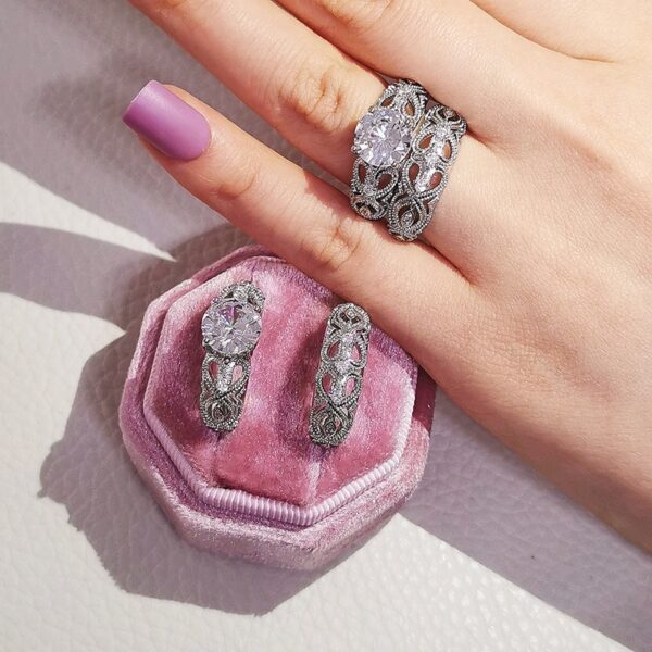 Πάντα διαχρονικό το σετ που σας προτείνουμε ανεπιφύλακτα, κατασκευασμένο από ασήμι 925. Αποτελείται από βέρα διακοσμημένη με μικρά λευκά ζαφείρια σε κοπή round και μονόπετρο δαχτυλίδι διακοσμημένο επίσης με ζαφείρια σε κοπή round με το κορυφαίο ζαφείρι σε κοπή round μπριγιάν 9mm ένα κόσμημα υψηλής αισθητικής!