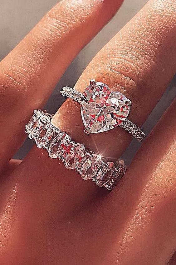 Επάργυρο 925 σετ δαχτυλίδι σειρέ μαζί με βέρα, διακοσμημένα με λευκά ζαφείρια (lab-created) σε κοπή heart το μονόπετρο και σε κοπή oval η βέρα. Υπέροχο το κεντρικό ζαφείρι (10mm) επίσης σε κοπή heart!!.Βάρος Πετρών :0.88ct .Βάρος 5.9grams. Ιδανικό για ρομαντική πρόταση γάμου ή αρραβώνα.