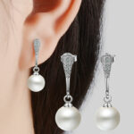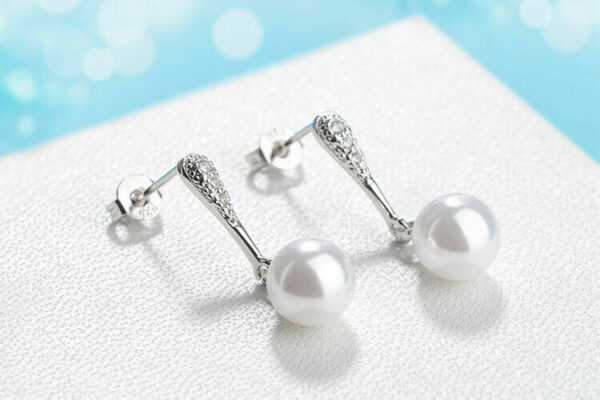 Ασημένια 925 σκουλαρίκια διακοσμημένα με λευκά ζιργκόν και μία κατάλευκη πέρλα 8mm!