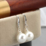 Ασημένια 925 σκουλαρίκια διακοσμημένα με λευκή South Sea Shell λευκή πέρλα ΑΑΑ 10mm.