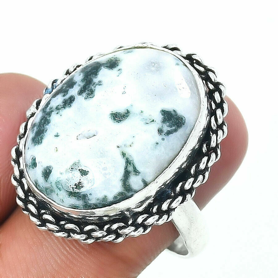Xειροποίητο, ινδικό δαχτυλίδι, κατασκευασμένο από μασίφ ασήμι 925 και διακοσμημένα με μία απίστευτης ομορφιάς πέτρα, Tree Agate σε κοπή oval.