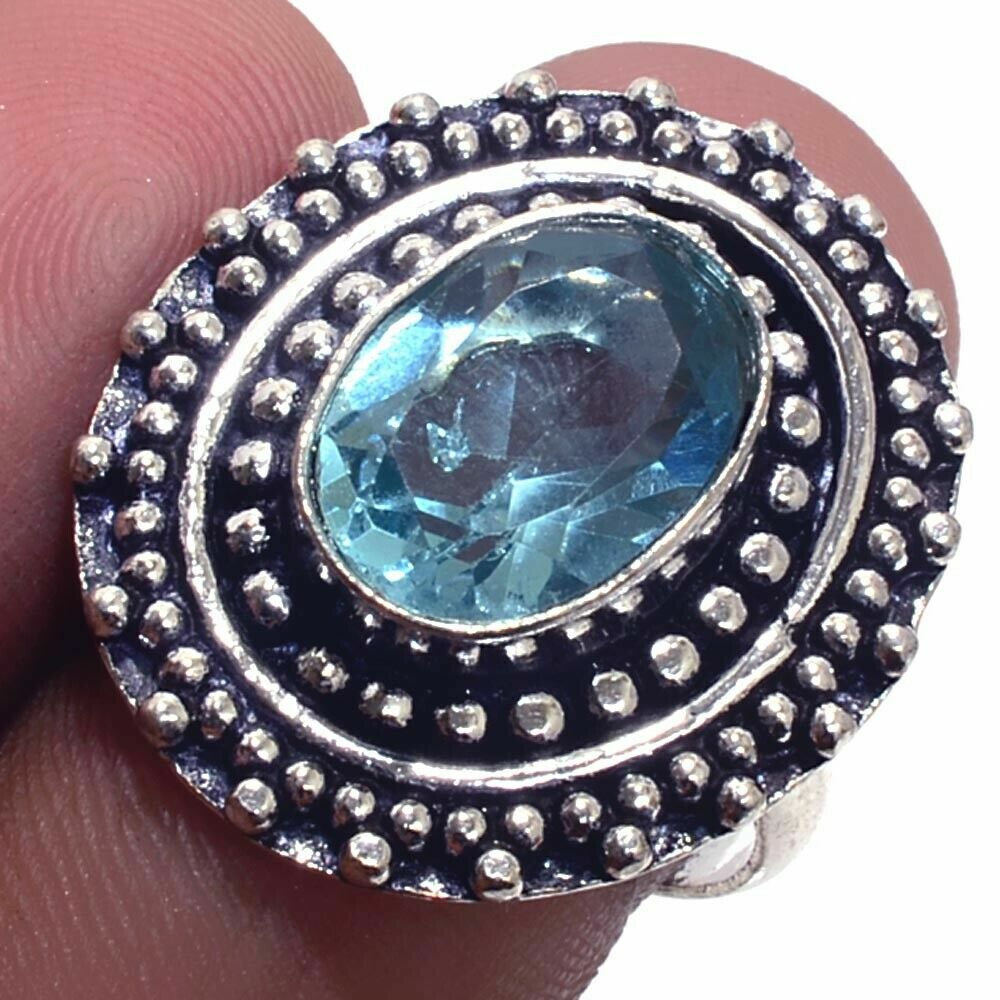 Υπέροχο δαχτυλίδι ινδικό χειροποίητο κατασκευασμένο από ασημί μασίφ 925, διακοσμημένο με υπέροχη, πολύτιμη πέτρα aquamarine AA ποιότητας, σε κοπή οβάλ. Είναι διαθέσιμο μόνο στο νούμερο 19.5 η αλλιώς 60.