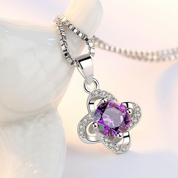 Ασημένιο 925 μενταγιόν σε σχήμα λουλουδιού διακοσμημένο με ένα μοβ αυστραλιανό κρύσταλλο στο κέντρο και λευκά ζαφείρια ( Lab creation) περιμετρικά. Συνοδεύεται από την ασημένια αλυσίδα του 45cm!