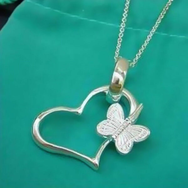 Ασημένιο κολιέ 925 με μοτίφ μία πεταλούδα πάνω σε μία καρδιά συνοδεύεται από ασημένια αλυσίδα 925 μήκος 45-50 εκατοστά.