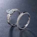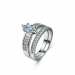 Επάργυρο 925, σετ δαχτυλιδιών που αποτελείται από ολόβερο με λουστρέ φινίρισμα και λευκά ζαφείρια σε όλη την γάμπα. Μονόπετρο, διακοσμημένo με λευκά ζαφείρια με το κορυφαίο ζαφείρι σε κοπή μαρκίζας!